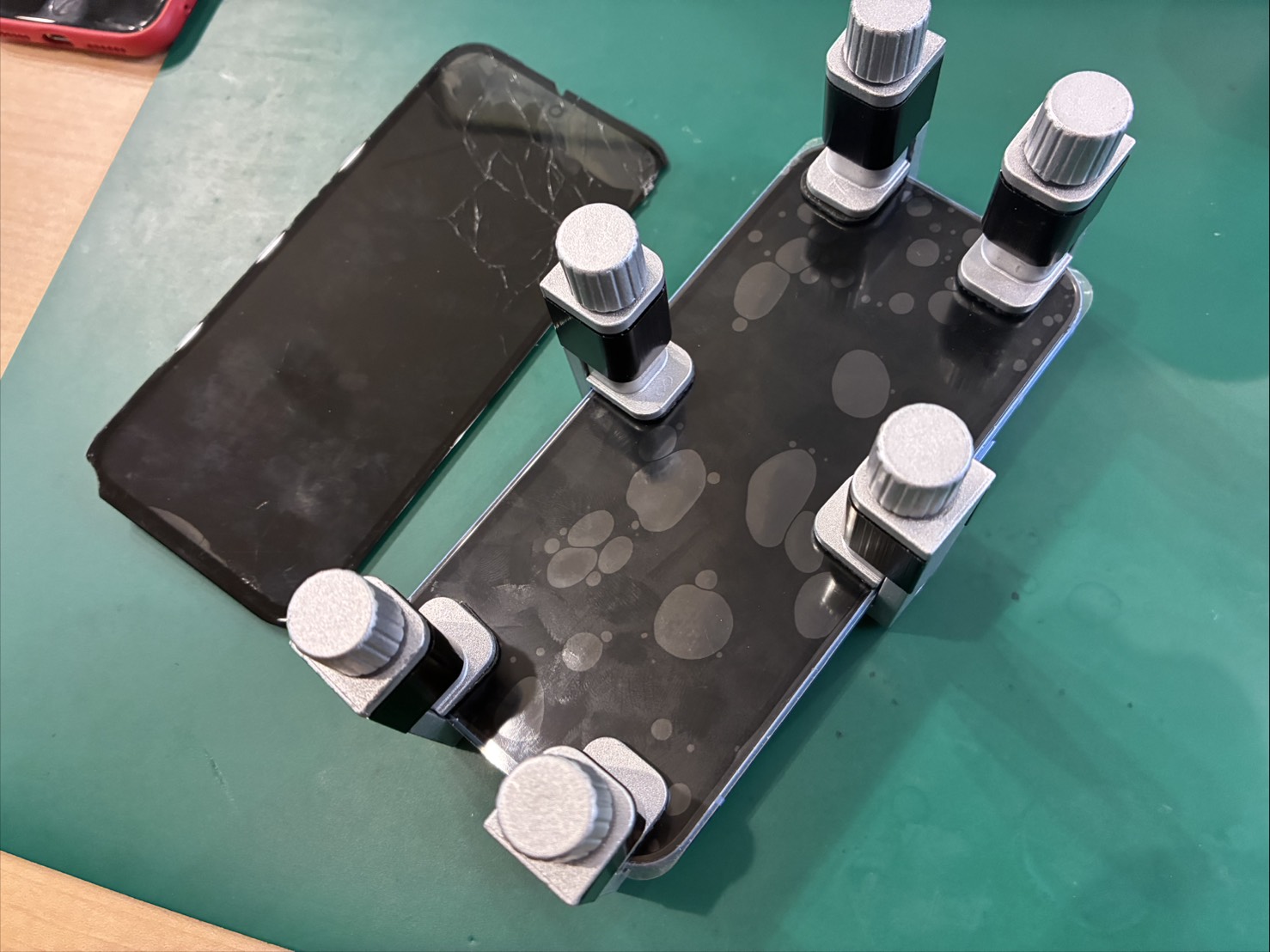 新しい画面に指紋認証を移植して、組み立て直してから画面を圧着させます。
